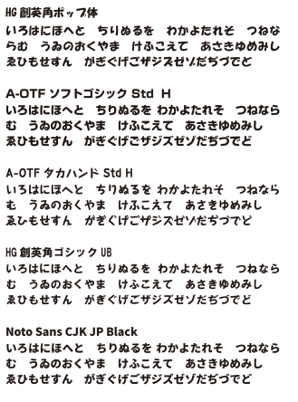 確かによく使われる「明朝体」などと比べるとインパクトがあり、違った雰囲気を醸し出すこともできますが、元々は見出しや小見出しといった大きく扱われる要素で使用する際に適した書体なので、全てポップ体だと「読んでいると疲れてしまう感」が出てくる方もいます。