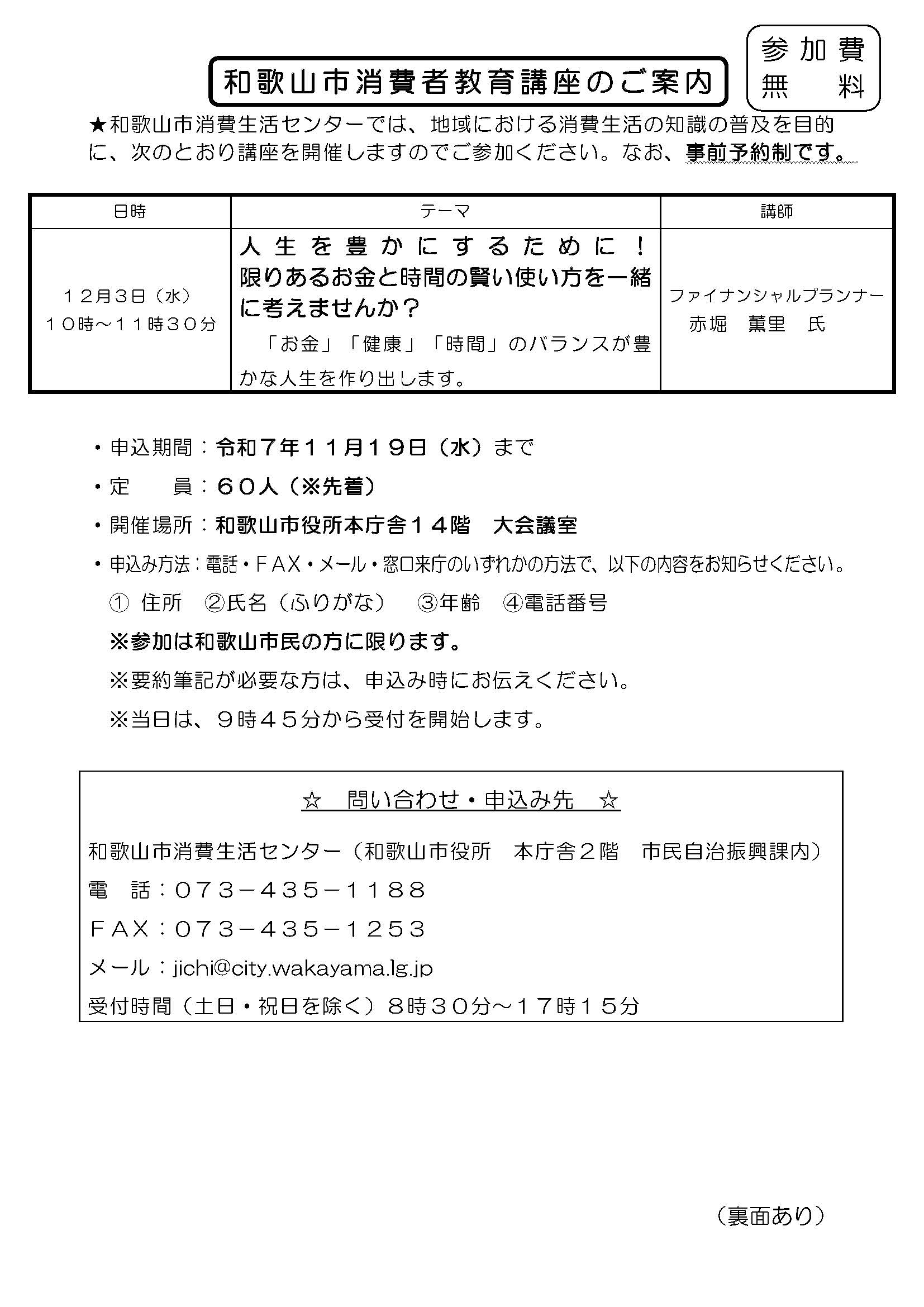 2025年度の第2回目となりました11月度の和歌山市消費者教育講座は